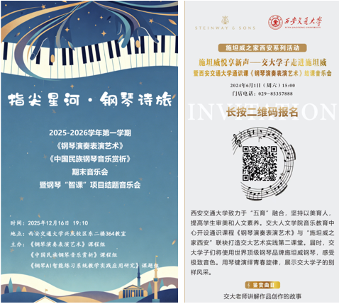 创新多元音乐实践,拓展美育文化维度。在多元音乐形式的创新实践中,党员教师成果丰硕。党员教师文茹、刘明等人策划的 “指尖星河・钢琴诗旅” 音乐会,以钢琴演奏为核心,串联起不同时期、不同风格的音乐作品,为师生带来沉浸式的 “音乐诗画” 体验;2023 年推出的 “奏响最美中国旋律” 主题音乐会,聚焦中国经典音乐作品,通过激昂婉转的旋律传递家国情怀,引发师生强烈情感共鸣;2025 年 4 月,中心全体党员教师更是携手马头琴艺术家,共同打造两场 “琴韵草原之声音乐会”,将蒙古族特色乐器与校园文化场景巧妙结合,让师生在悠扬的马头琴声中感受民族文化魅力,进一步拓宽了校园美育的文化维度。